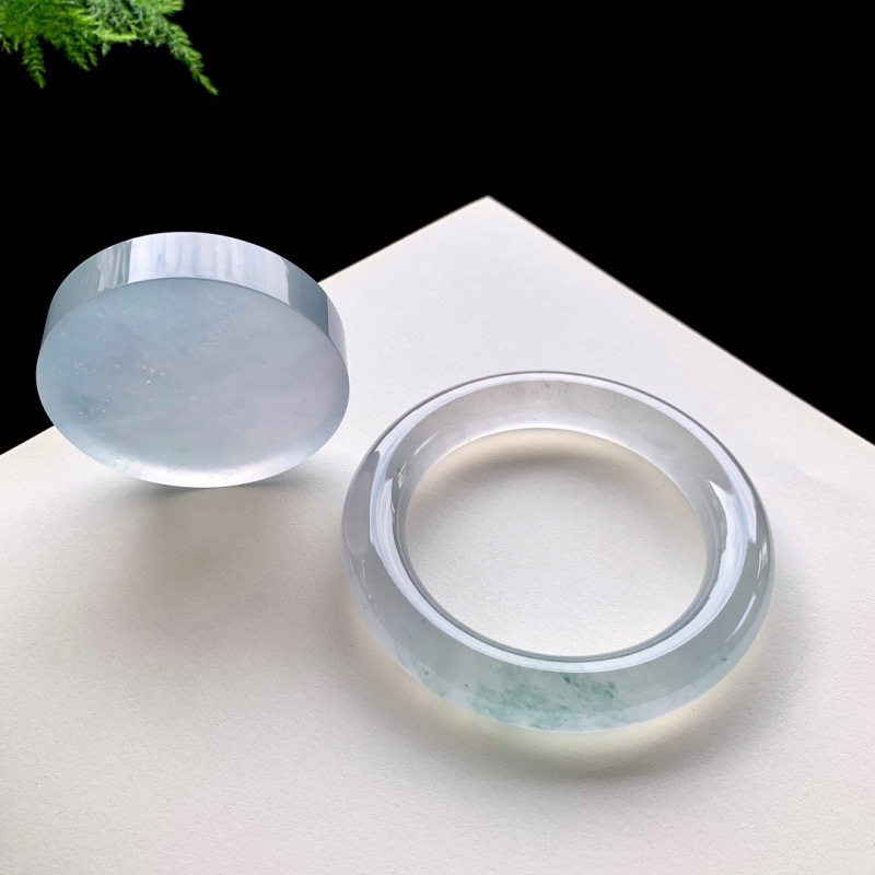 天然缅甸高冰玻璃种翡翠圆条a货翡翠手镯飘蓝绿花缅甸玉石镯心子