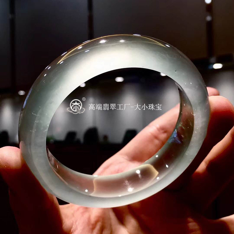 大小珠宝 玻璃种翡翠手镯正圈圈口57mm高端收藏级翡翠玉镯带证书