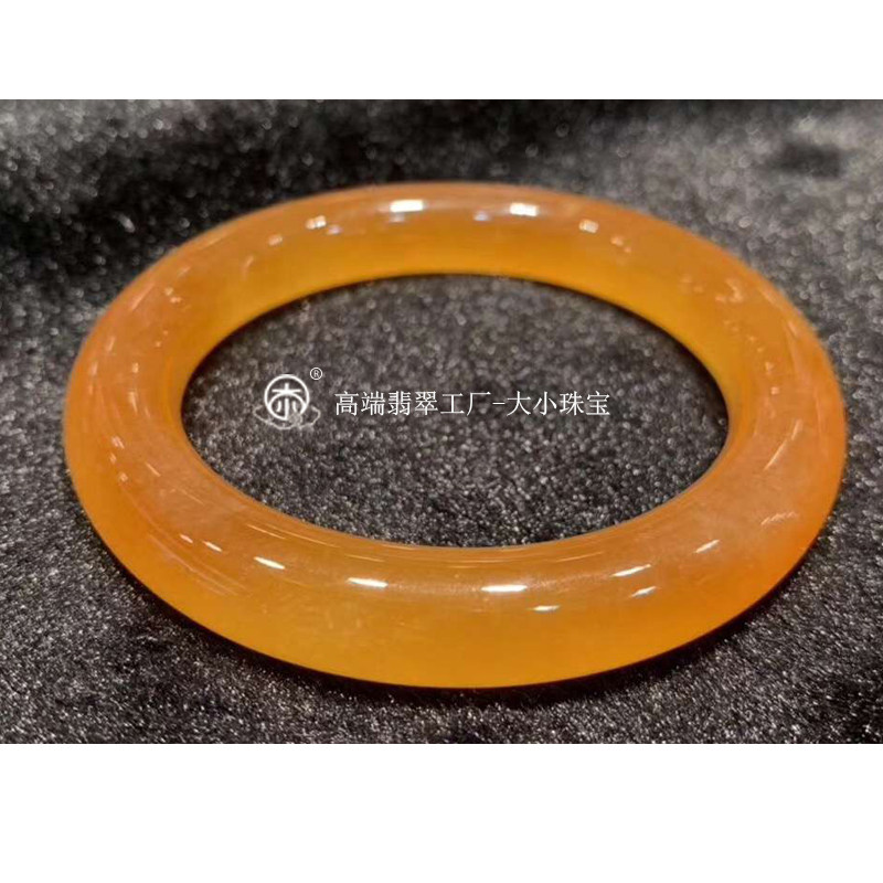 大小珠宝 玻璃种翡翠手镯圆条53mm天然正品黄翡翡翠玉镯子带证书