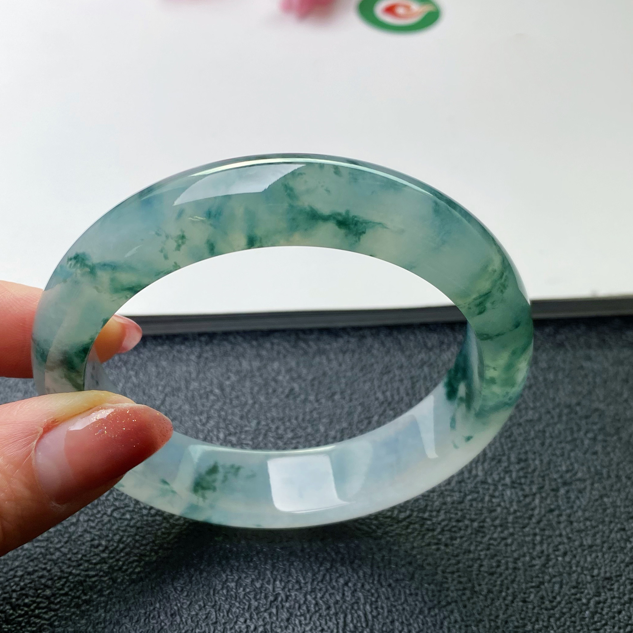 "月落微沉"缅甸高端翡翠冰种飘花玉手镯子正品玻璃种女款真玉处理