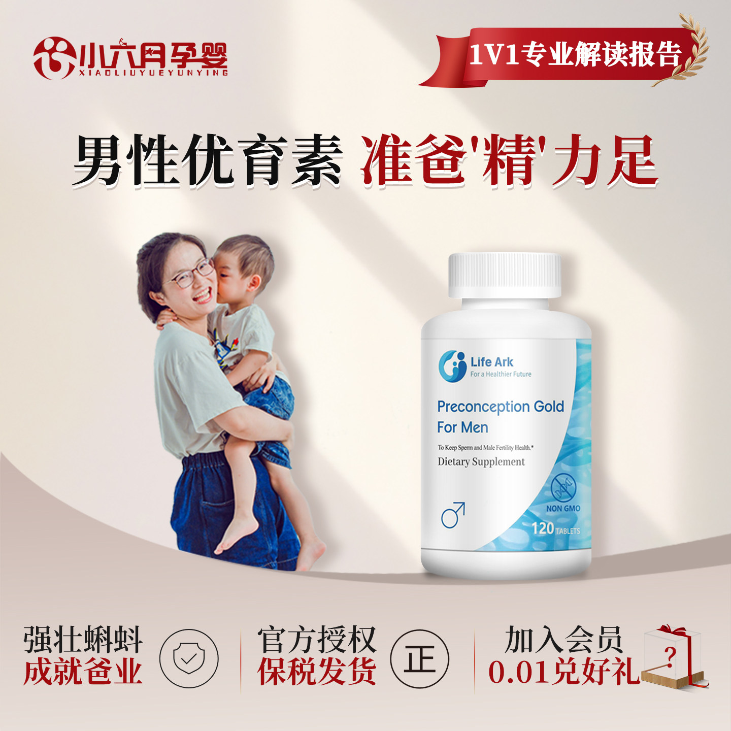 美国LifeArk祈育男性优育素精子活力质量少精弱精妥金碎片育能宝