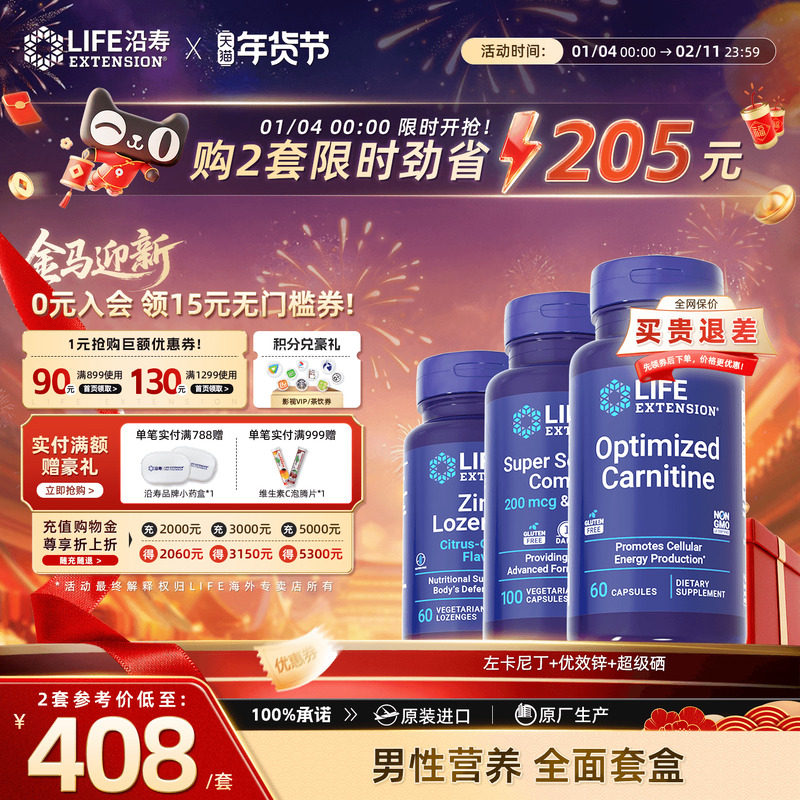 沿寿LIFE左卡尼丁锌硒宝片精子质量活力补精畸形碎片少精弱精备孕
