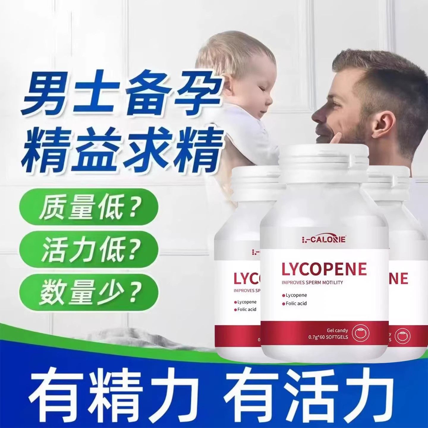 因倍夕纽艾优欧可男士番茄红素活力提高精子弱精调理孕前男性备孕