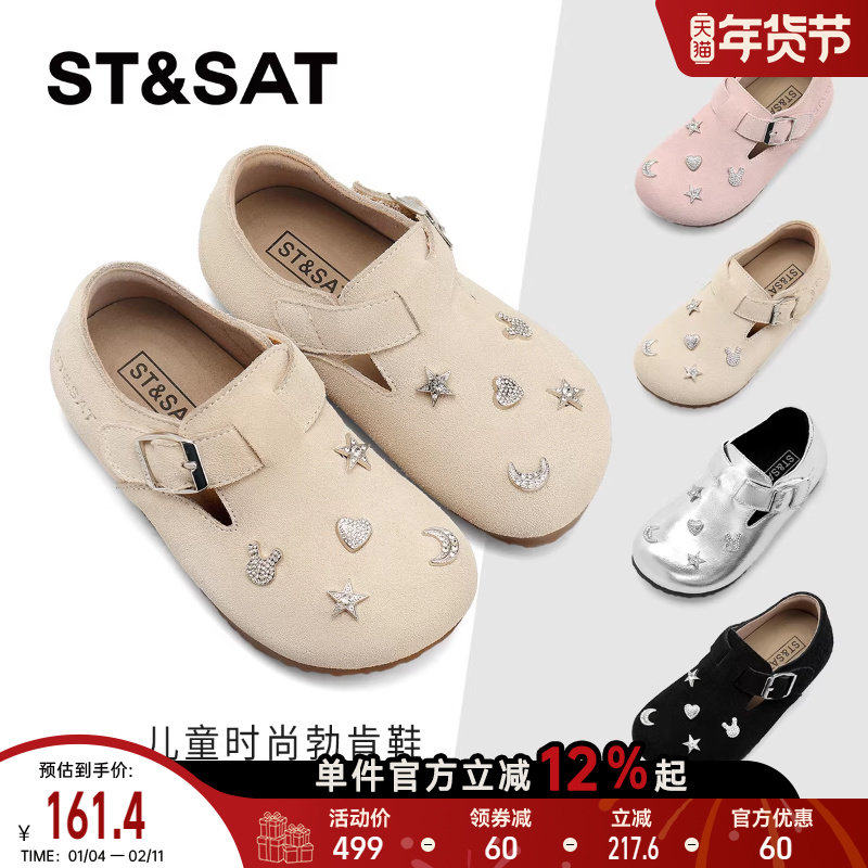 星期六童鞋勃肯鞋女童春秋季新款学生外穿可爱休闲软底百搭小皮鞋