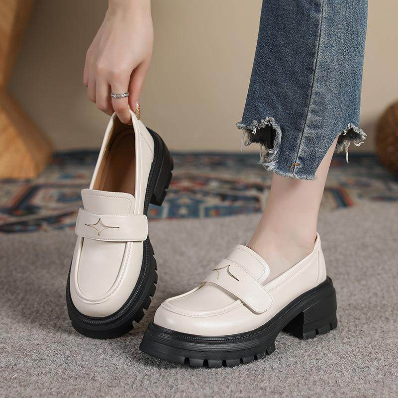 厚底乐福鞋女鞋子2025春秋新款松糕简约单鞋英伦风学生小皮鞋女