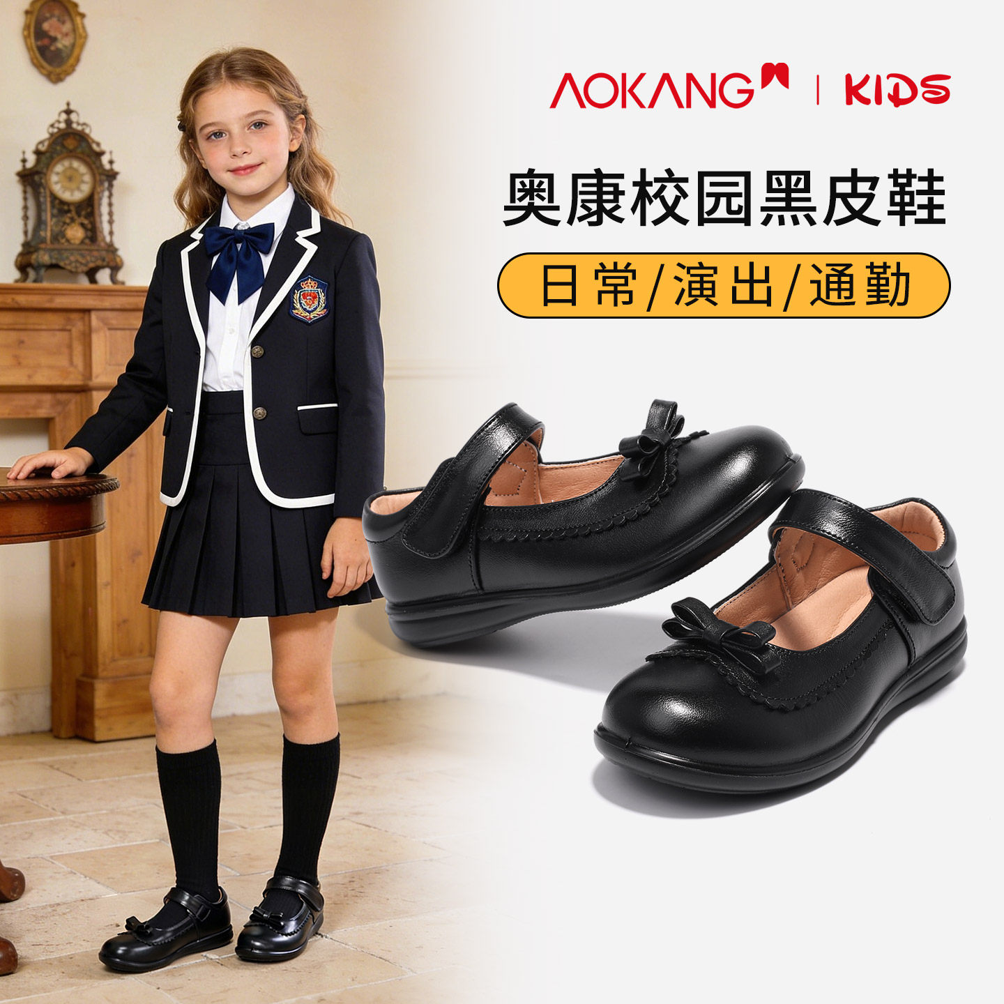 奥康童鞋女童小皮鞋黑色2026新款春秋女孩玛丽珍单鞋小学生公主鞋
