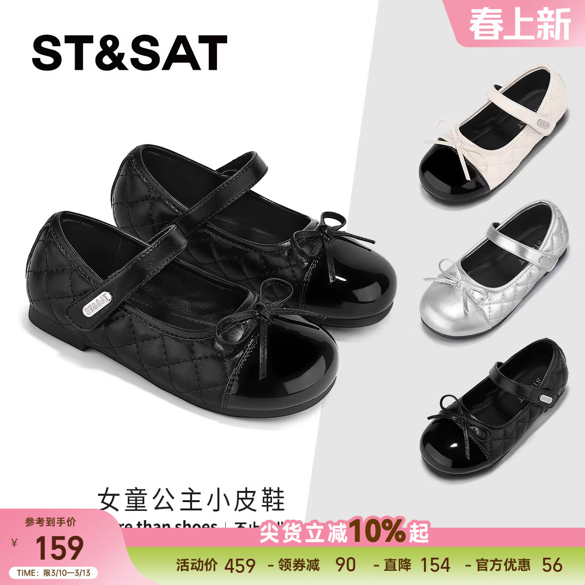 思加图童鞋春季新款儿童乐福鞋单鞋学生演出黑色小皮鞋女童公主鞋