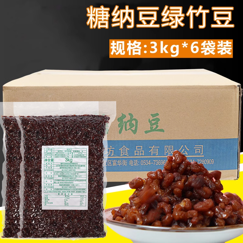 商用豆香坊绿竹豆糖纳豆3kg*6包 即食熟糖纳红豆免煮奶茶店原材料