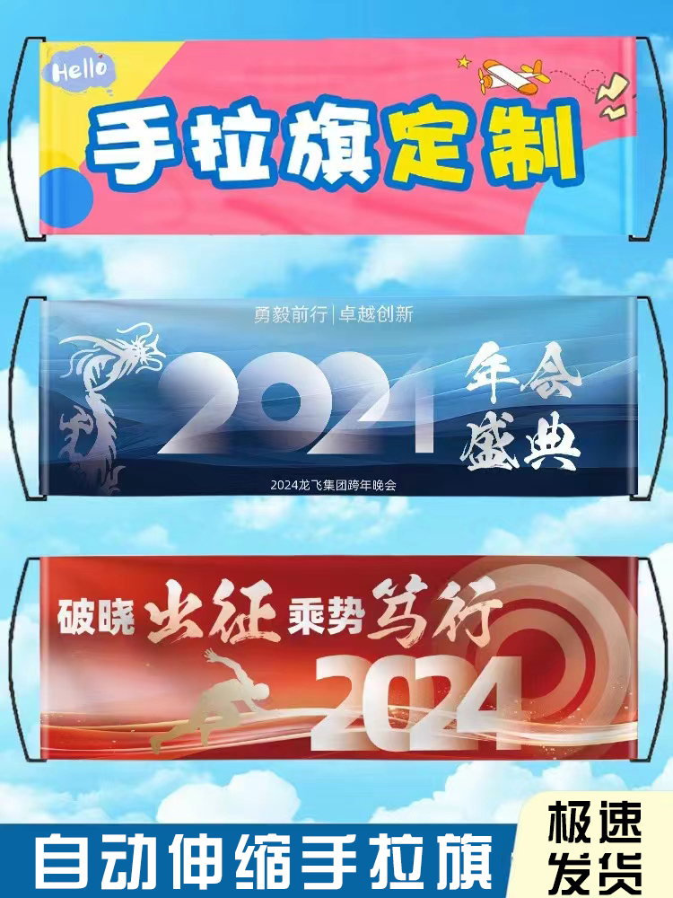 新年手拉旗定制公司年会尾牙宴横幅元宵快乐跨年手幅春节装饰挂布