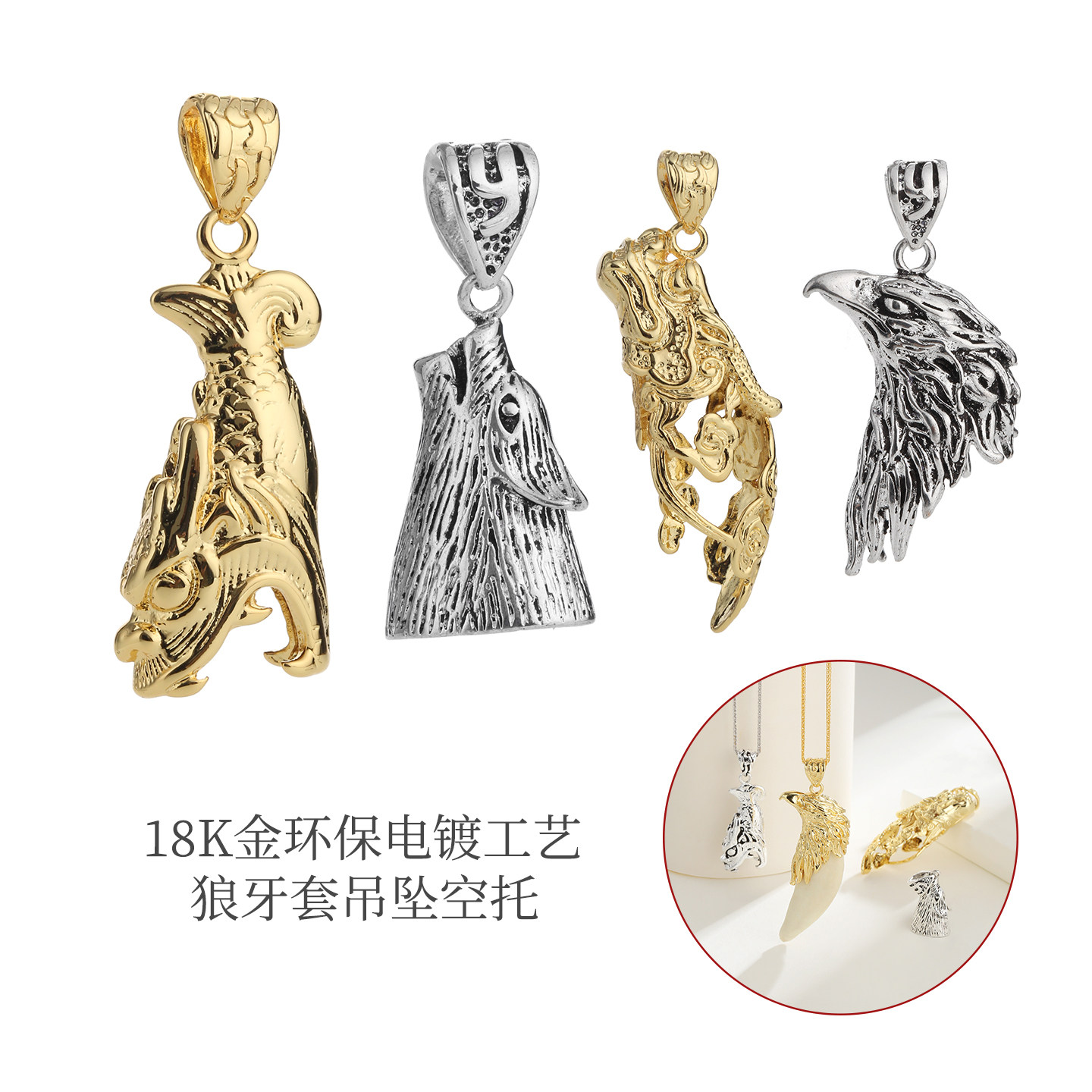 霸气大方复古狼牙吊坠空托扣套男女套项链包黑狗牙牙套防裂保护套