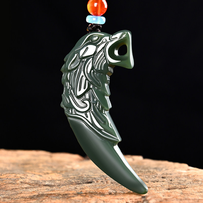 和田玉吊坠男士款平安护身狼牙玉石项链个性玉佩挂件男生青玉饰品