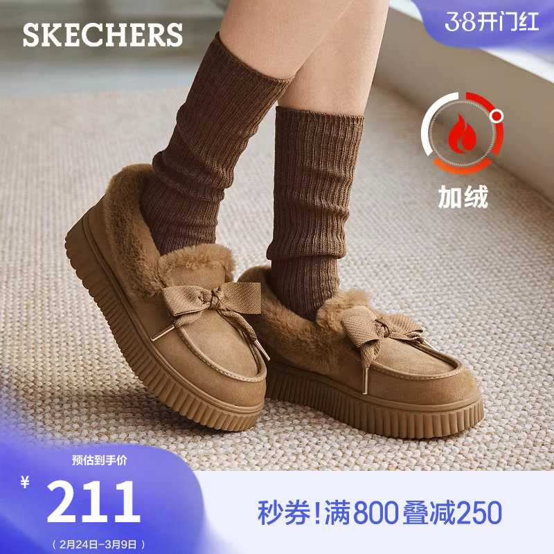 斯凯奇奶贝鞋|冬季女鞋加绒保暖乐福鞋豆豆鞋玛丽珍鞋蝴蝶结单鞋