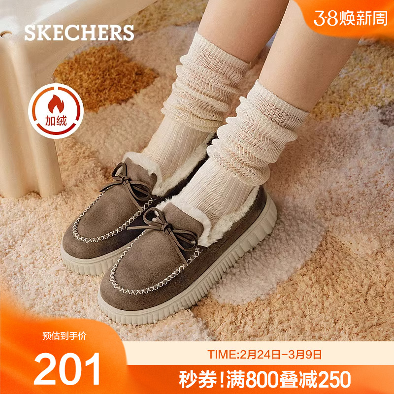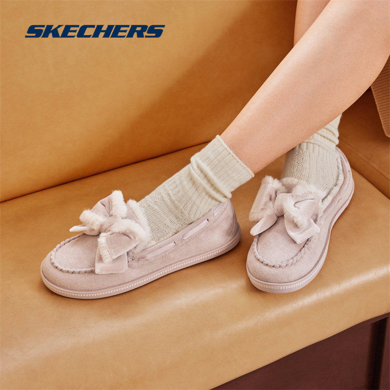 Skechers斯凯奇新款女子蝴蝶结豆豆鞋加绒保暖一脚蹬乐福鞋169000