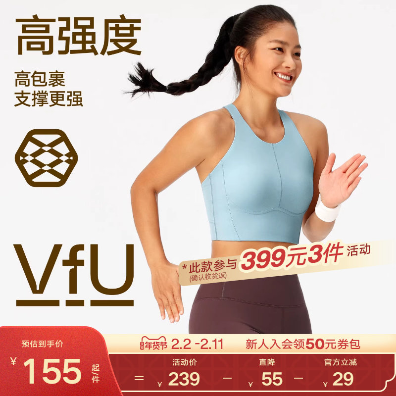VfU高强度运动内衣防震强支撑包裹搭扣背心透气网纱健身跑步文胸