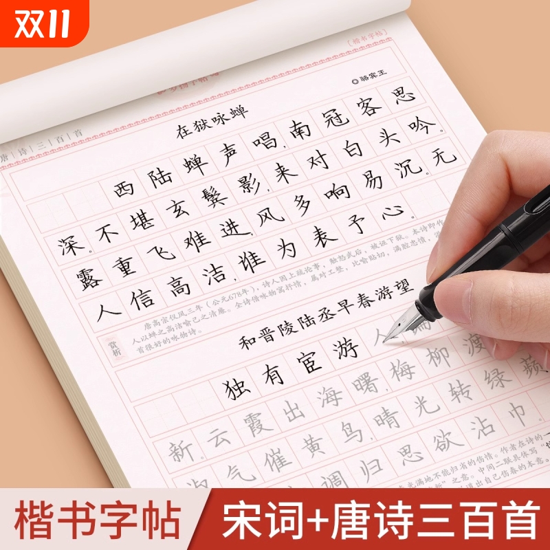临摹练字帖练字成人楷书正楷成年大人硬笔书法字帖古诗词男女生钢笔练字本初中高中生楷体每日一练字体大气漂亮专用练习贴反复使用