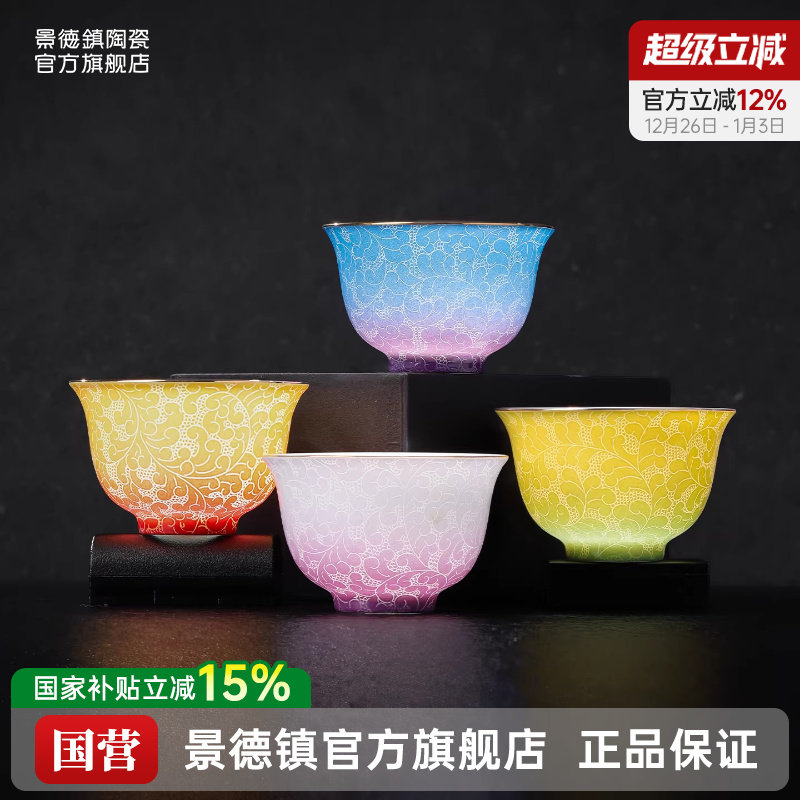 景德镇官方陶瓷手工扒花茶杯高颜值主人杯高端茶具品茗杯送人礼物
