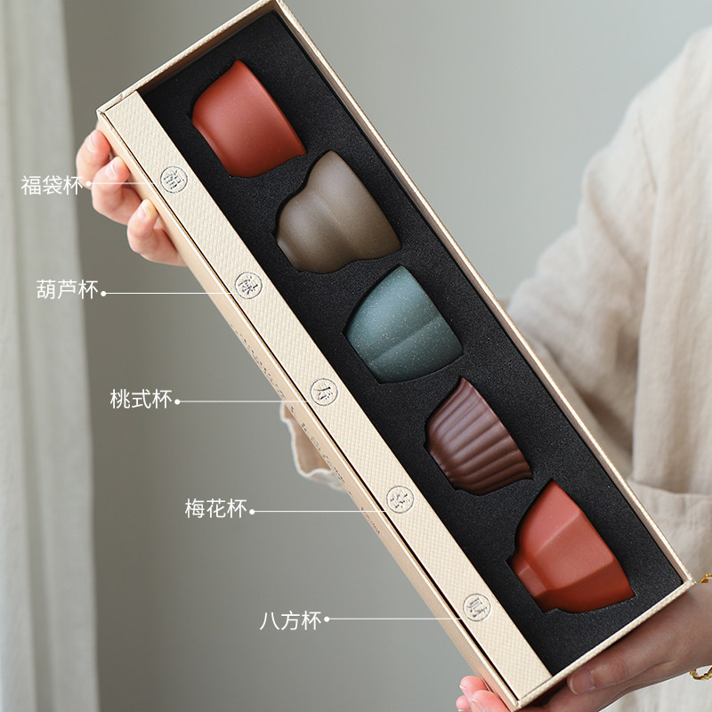 故宫文创五福杯 原矿紫砂主人杯套装手工茶杯功夫品茗杯茶盏礼品