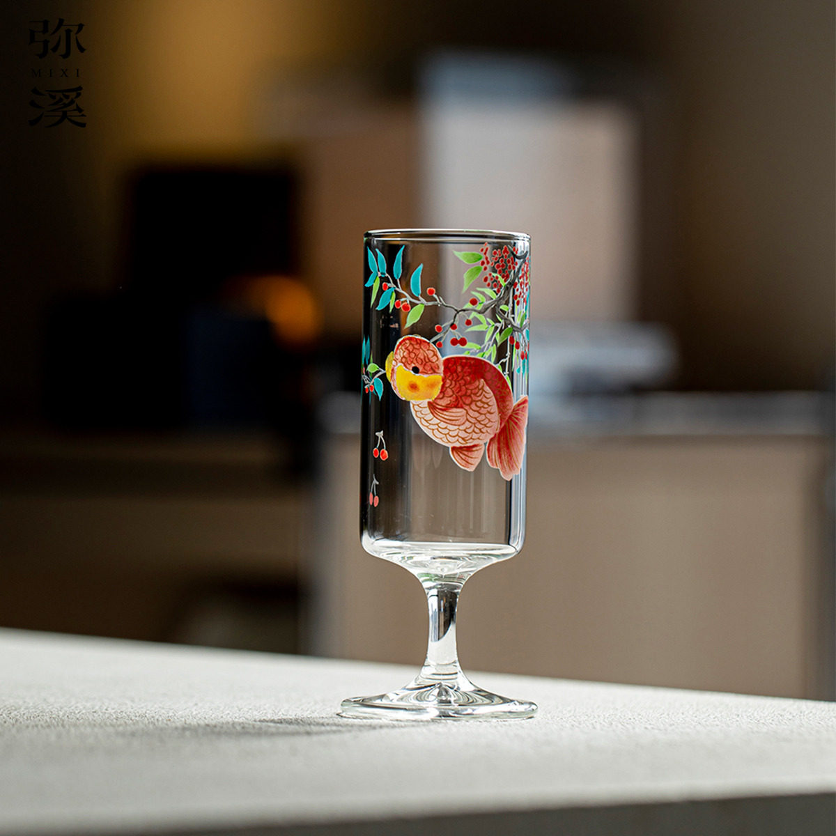 弥溪樱桃兰寿新款高脚杯家用创意透明玻璃杯轻奢手工茶杯功夫茶具