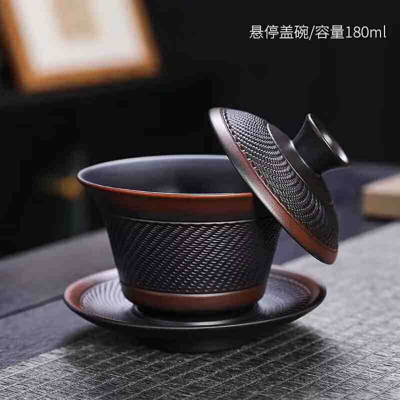 紫陶悬停跳刀三才盖碗手工茶杯家用办公功夫茶具泡茶碗盖碗大容量