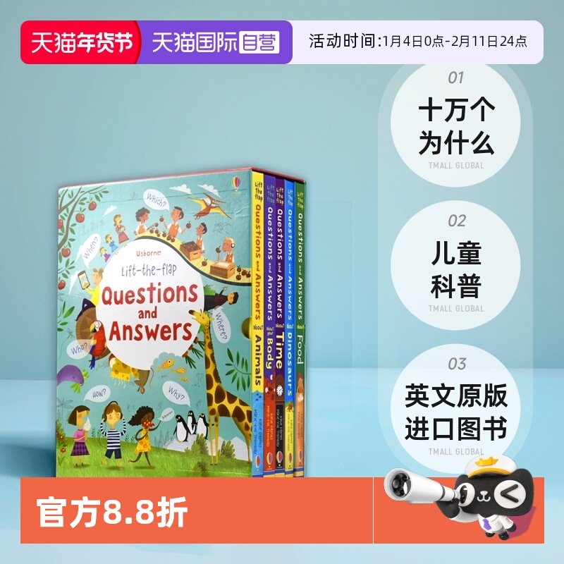 【自营】Usborne Lift-the-Flap Questions and Answers 尤斯伯恩 问与答百科翻翻书5册 十万个为什么 儿童科普 英文原版进口图书