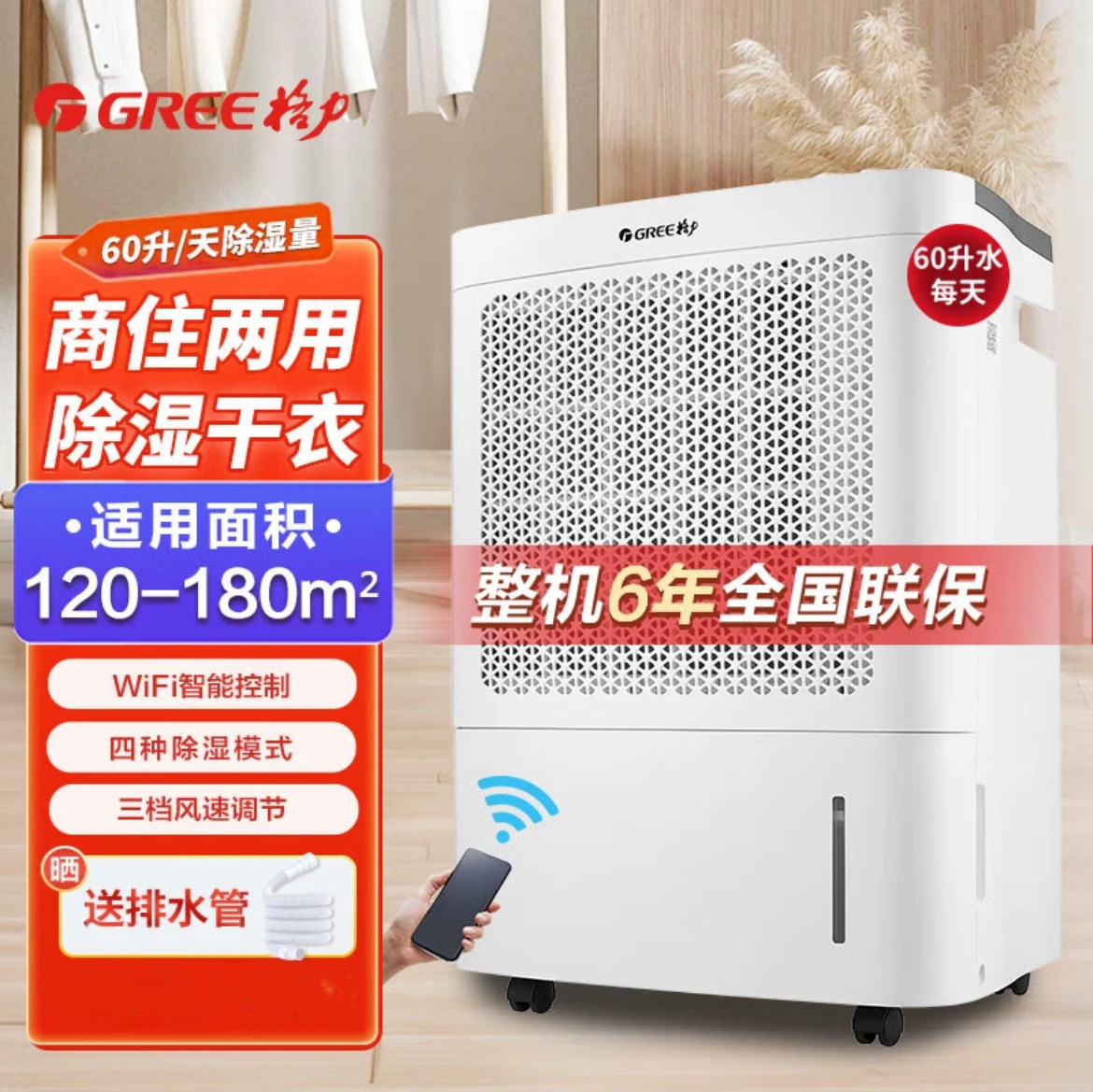 格力除湿机家用卧室DH60EI抽湿机WIFI别墅地下室干衣干燥机吸湿器