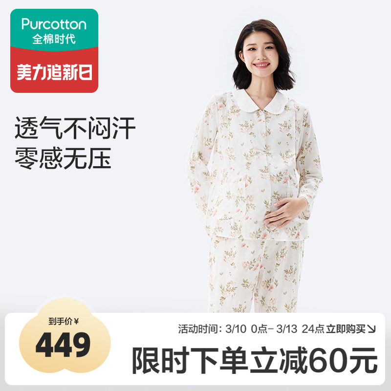 全棉时代孕妇家居服纯棉纱布舒适哺乳喂奶产后月子套装睡衣女礼物