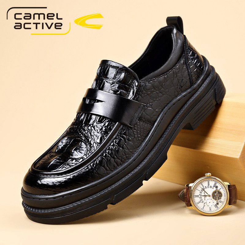 德国骆驼动感鳄鱼纹男鞋透气英伦真皮牛皮商务皮鞋休闲鞋耐磨防滑