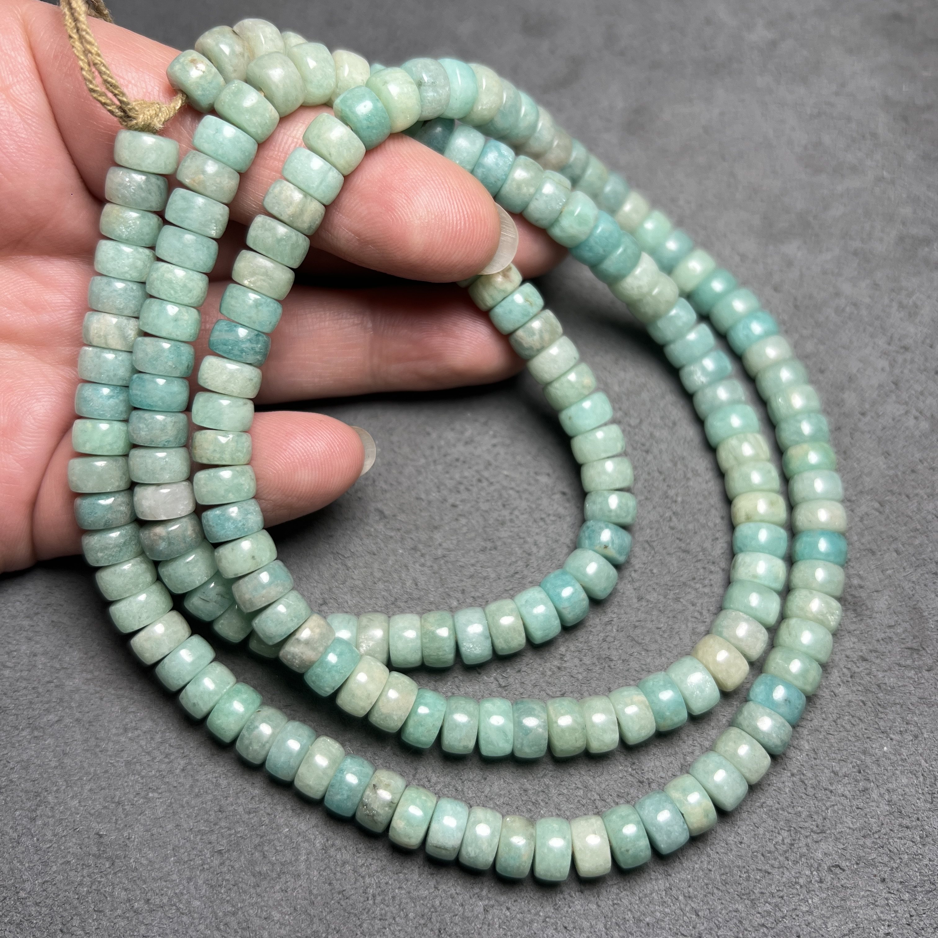 古玩仿老玉器包浆老天河石直切车轮珠高古蓝珠子天河石手链配珠串
