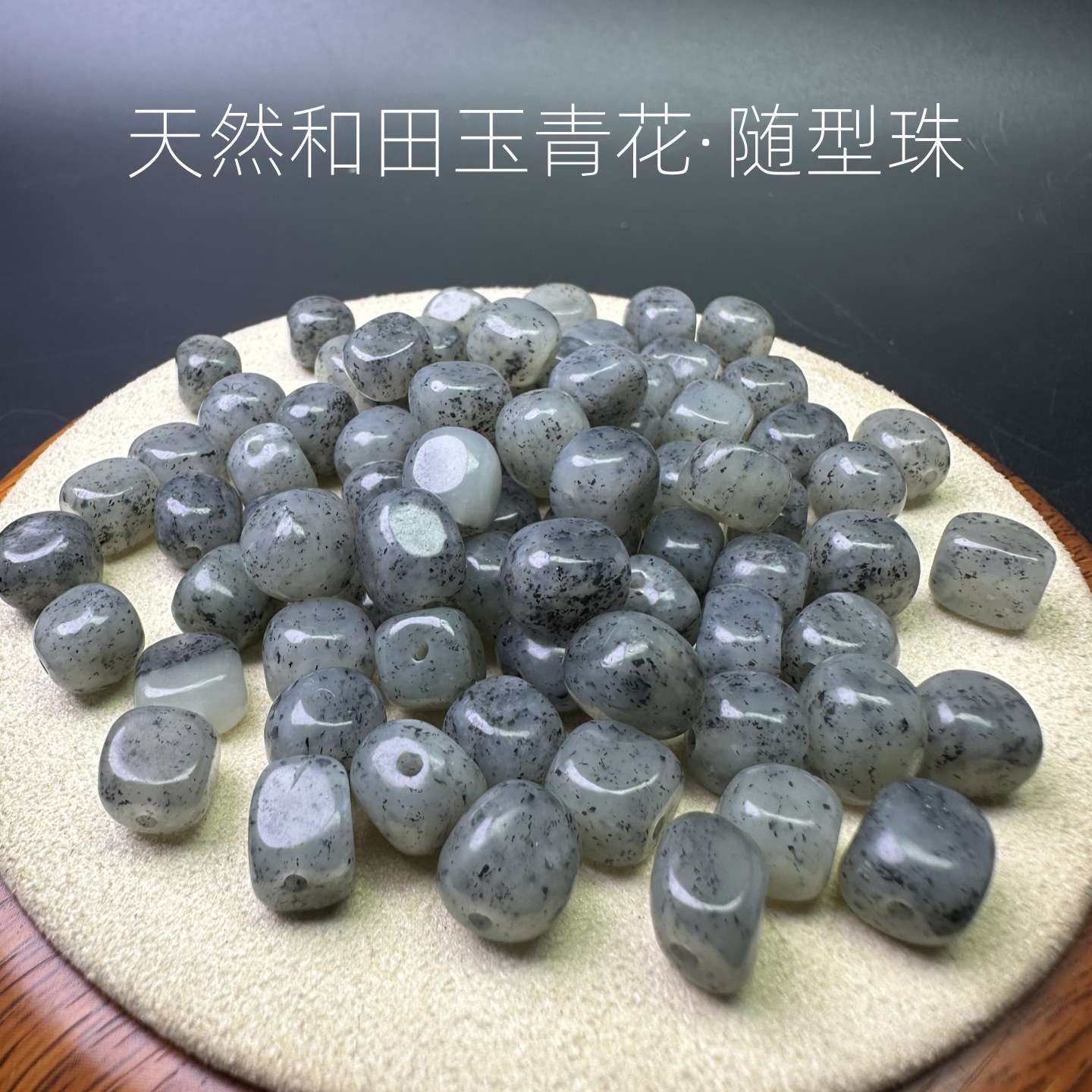天然新疆和田玉点墨青花随型珠老型珠diy编织手串文玩饰品配件