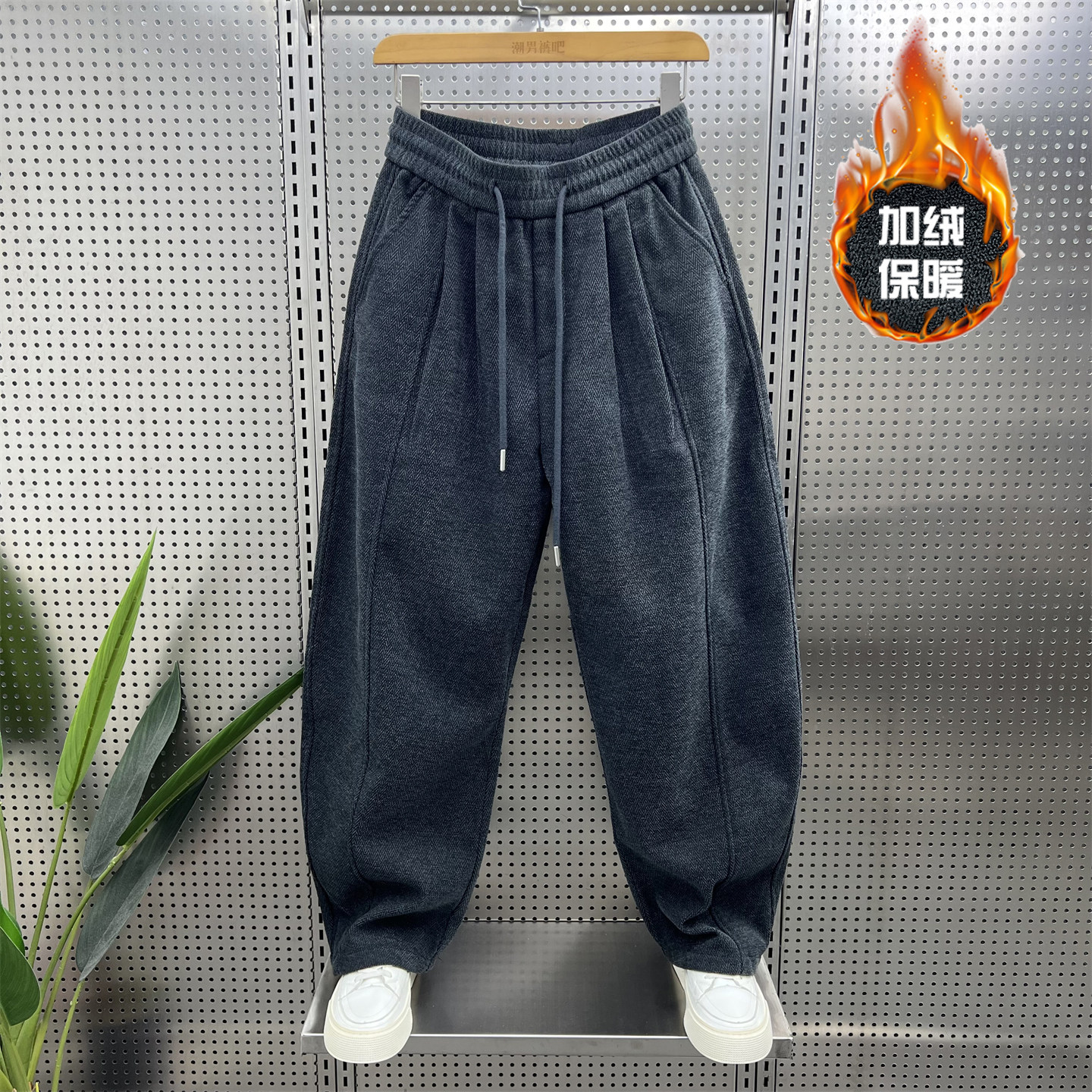 冬季加绒加厚休闲裤子男2025新款宽松直筒褶皱设计时尚百搭阔腿裤