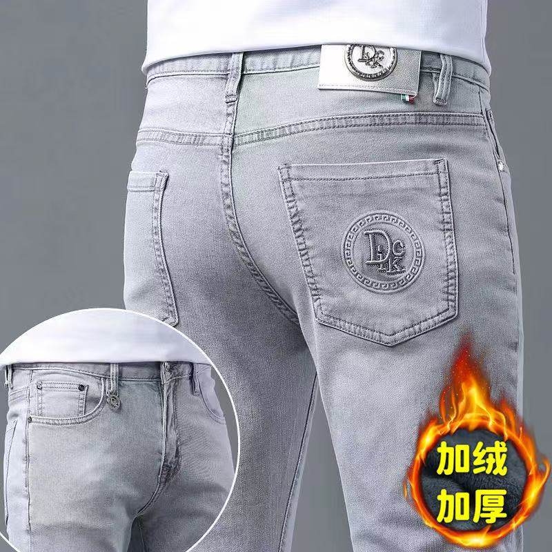 班尼路SK加绒牛仔裤男秋季新款美式高街阔腿宽松直筒休闲裤子男YS