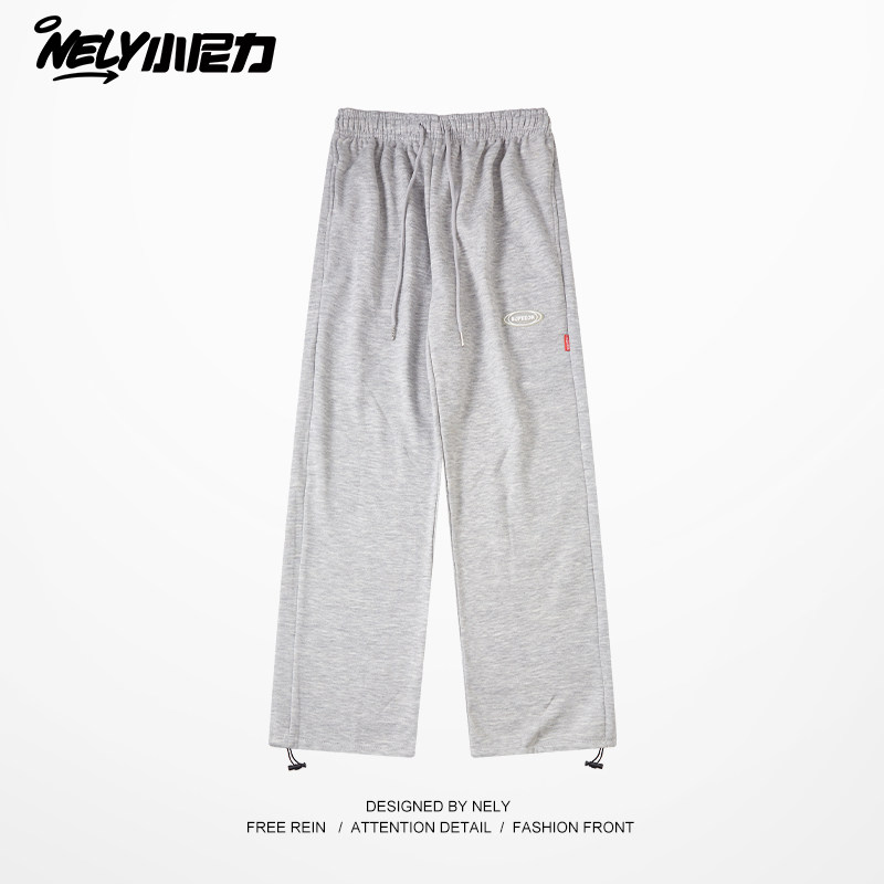 GOOZI MADE灰色卫裤男春季宽松直筒青少年运动裤男生休闲裤子男款
