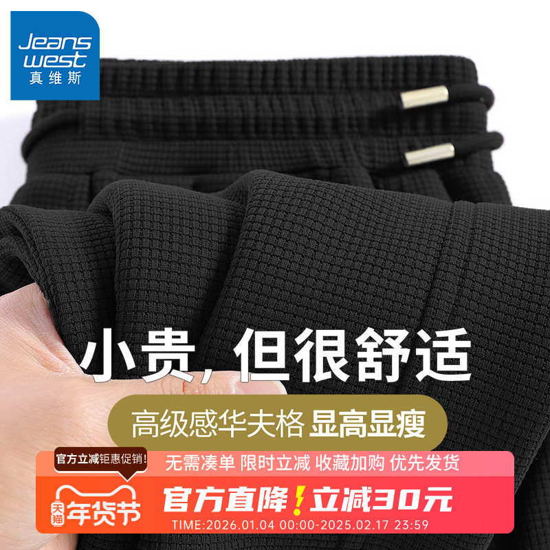 GV真维斯休闲裤子男春秋款重磅华夫格卫裤男士宽松休闲直筒裤B
