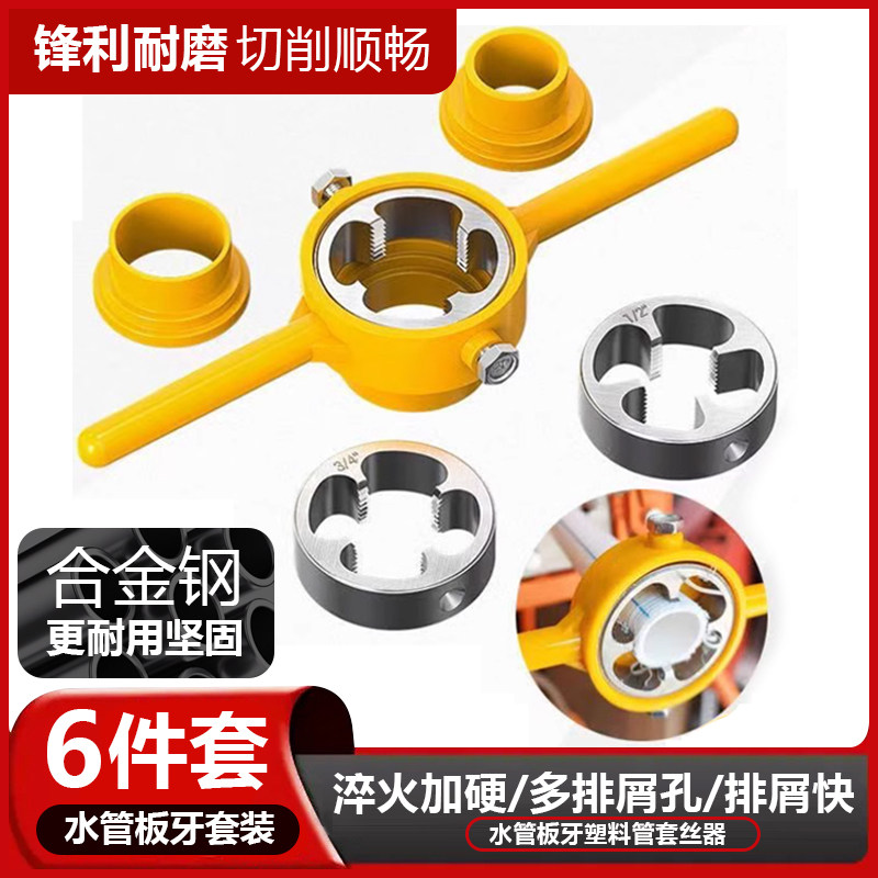 工业级水管板牙6件套塑料管水管套丝神器ppr管板牙套装46分攻丝器