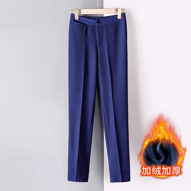 蓝色加绒职业西装裤女秋冬正装西服裤直筒裤工装裤酒店工作服裤子