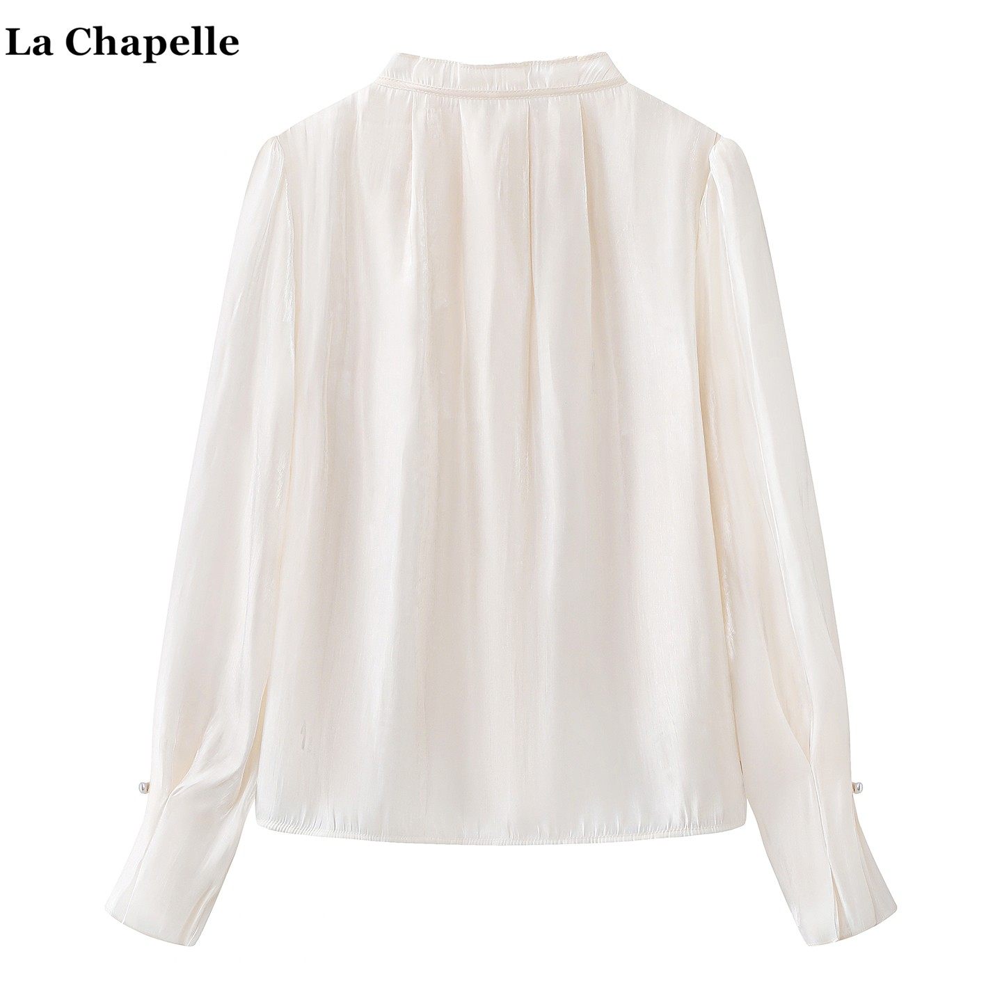 拉夏贝尔/La Chapelle法式钉珠立领衬衫女春季新款喇叭袖系带衬衣