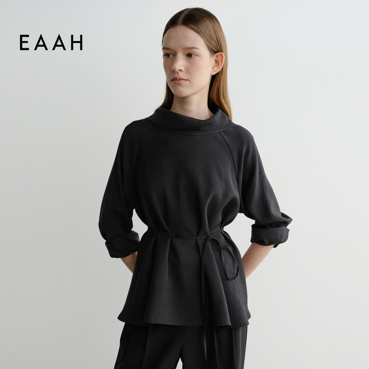 EAAH 韩国品牌 女装设计感系带喇叭袖衬衫宽松收腰时尚百搭上衣