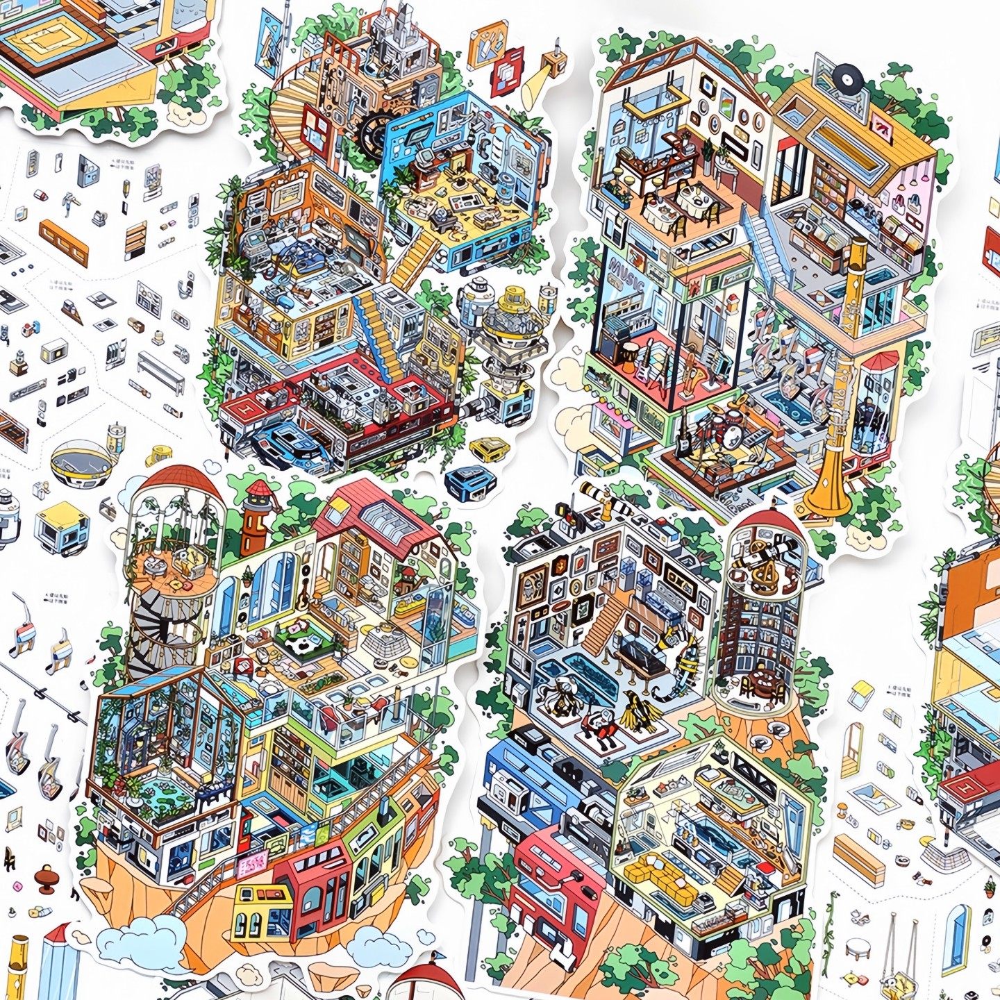 造景贴纸微缩场景贴纸合集本diy手账贴纸新款装饰贴画儿童女孩益智玩具网红3d微缩小屋男孩立体贴纸书礼物