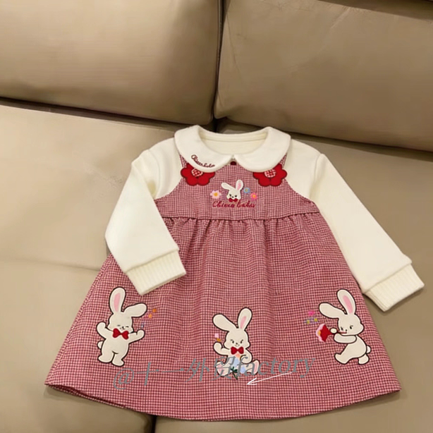 女童冬季背带裙套装洋气小女孩红色打底衫毛衣婴儿保暖夹棉公主裙