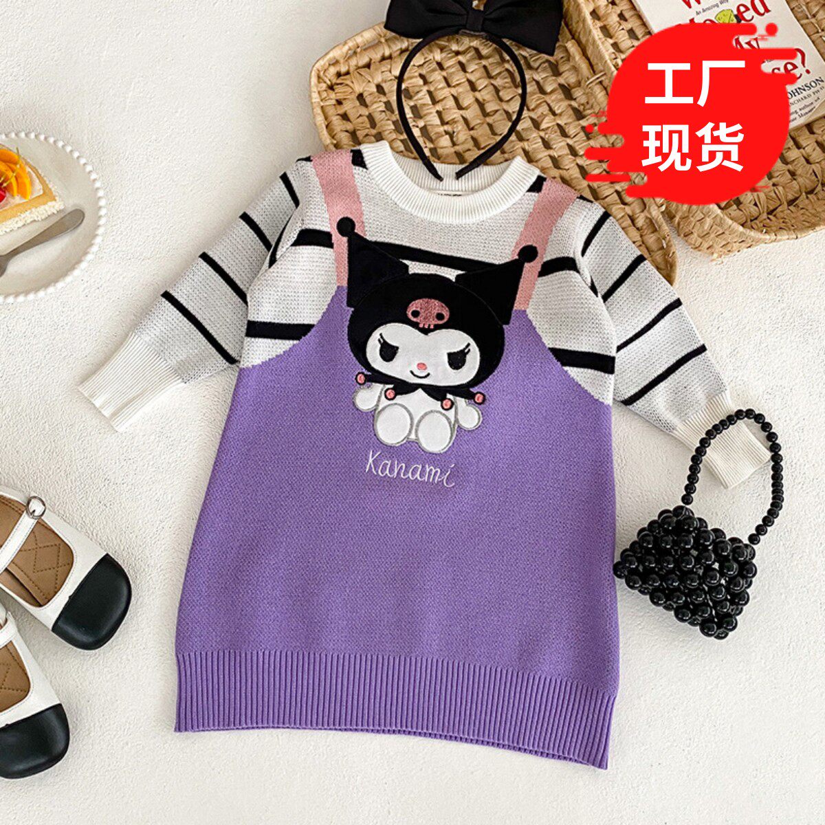 拜年服女童毛衣2025春秋冬装紫库洛米条纹儿童连衣裙卡通背带裙子