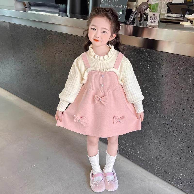 儿童宝宝针织毛衣裙百搭新款洋气针织女童公主周岁礼服背带连衣裙