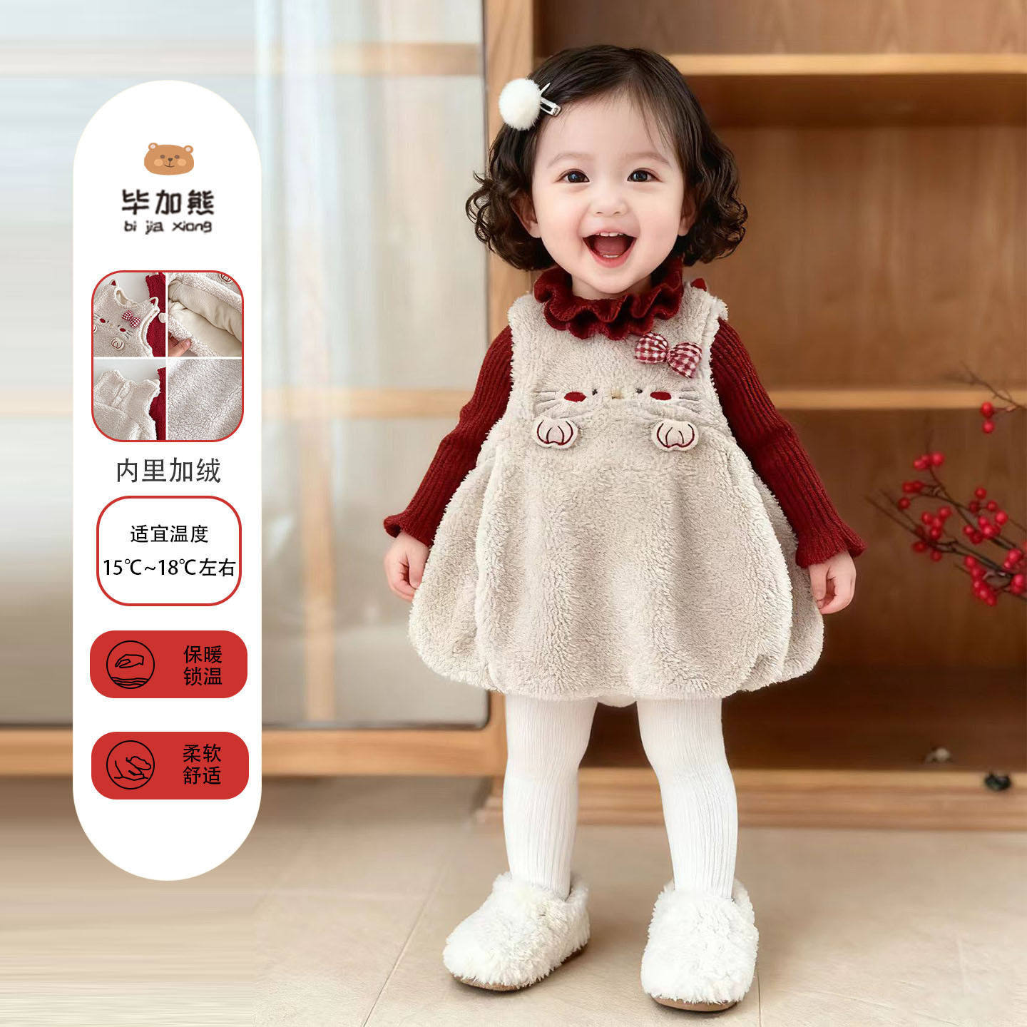 女童连衣裙宝宝衣服周岁礼服冬装背带毛衣背心裙一岁新年装拜年服
