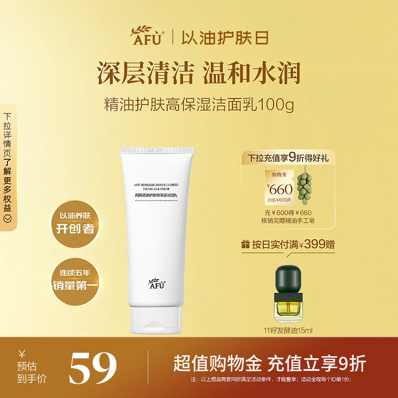 阿芙高保湿氨基酸精油洗面奶温和洁面乳有效清洁去油补水女男士用