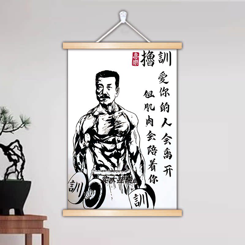 撸训肌肉鲁迅搞笑挂画健身房挂墙咖啡厅墙面装饰画生日礼物送男生