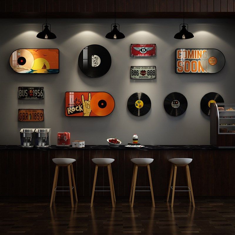 烧烤饭店墙面装饰画清吧咖啡厅KTV包厢音乐黑胶唱片工业风壁挂画