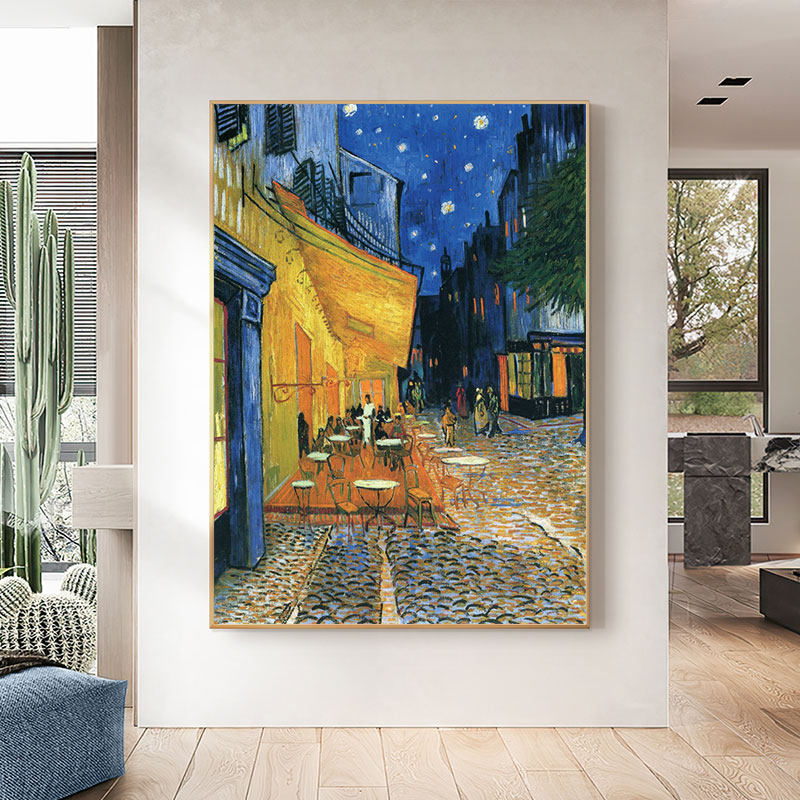 梵高咖啡馆欧式餐厅装饰画玄关挂画竖版壁画客厅沙发背景墙画油画
