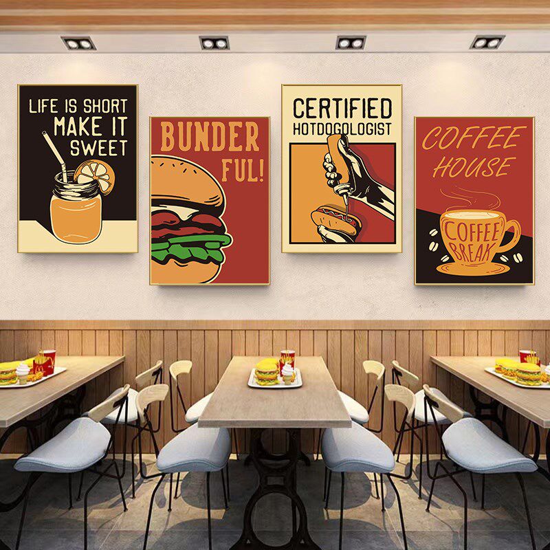 披萨店墙面装饰画复古风咖啡热狗橱窗海报中国汉堡店墙壁餐厅挂画