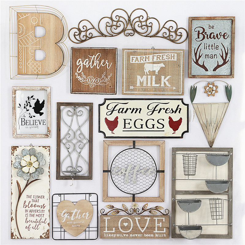 孤品美式复古实木铁艺壁饰客厅民宿餐厅酒吧咖啡店墙面装饰挂板牌