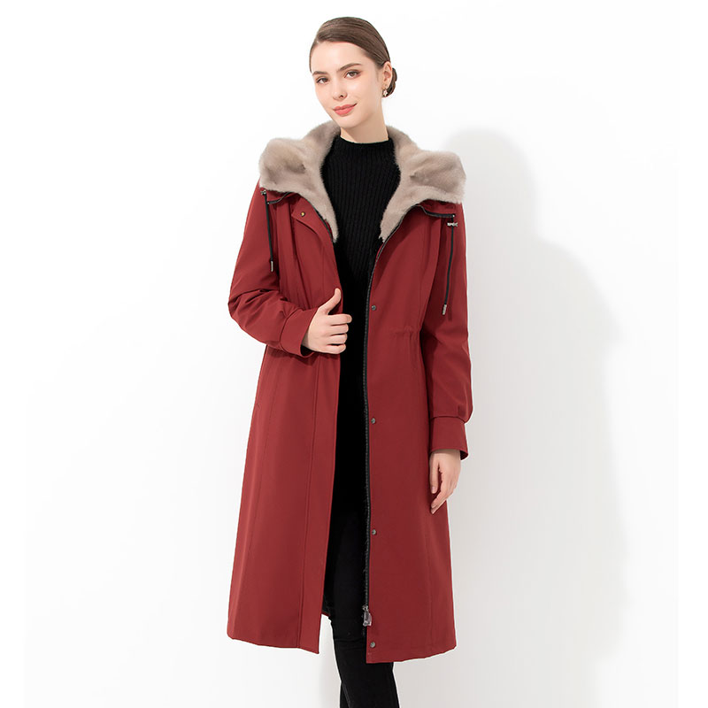- 女皮毛一体大衣中长款
