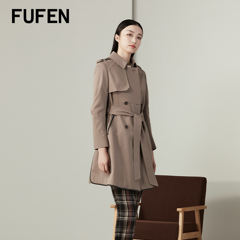 FUFEN福芬春秋新款风衣设计感高级双排扣全棉外套FY-14421-1
